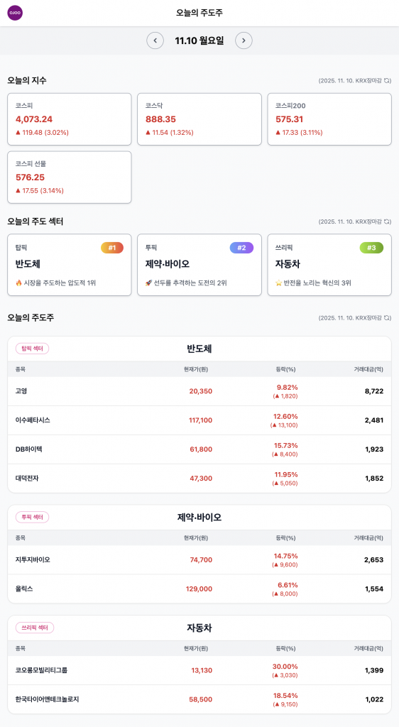 2025년 11월 10일 (월) – 오늘의 주도주