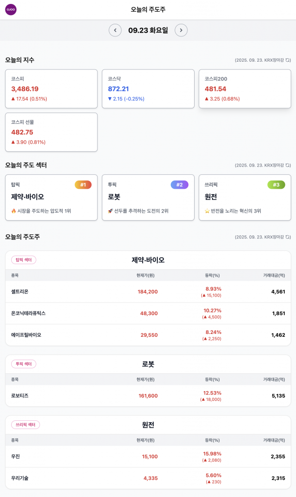 출처: OJOO 오늘의 주도주 (https://ojoo.kr)